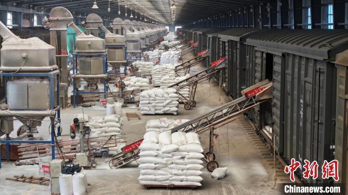 中新网哈尔滨2月14日电 (黄旭)2月14日,满洲里铁路口岸化肥换装场内机械声轰鸣,40台灌装机开足马力,换装工人手脚不停,对一列进口化肥进行换装作业。